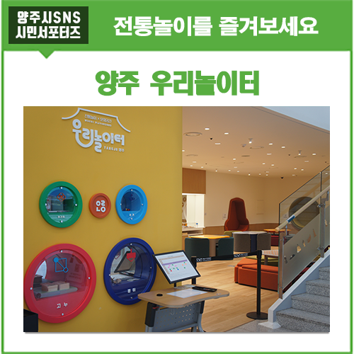 안녕하세요 양주시 SNS 시민 서포터즈입니다.지난 4월 26일 양주 회암사지박물관에 전통놀이문화공간인 우리놀이터 3호점이 개관했다고 합니다.^^저도 이번에 처음 방문해봤어요.^^ 양주우리놀이터