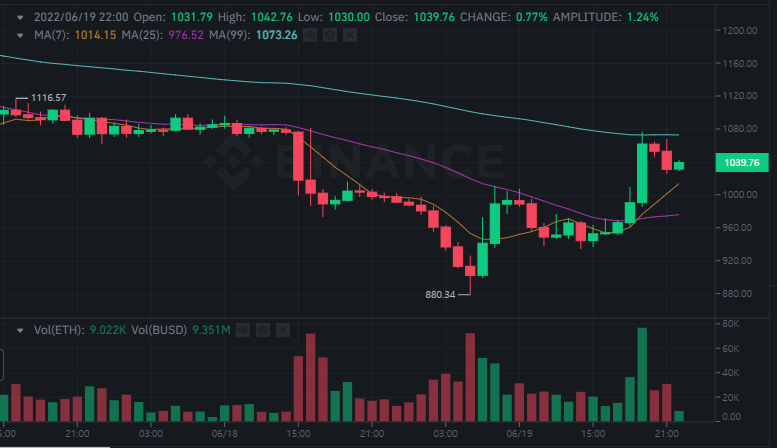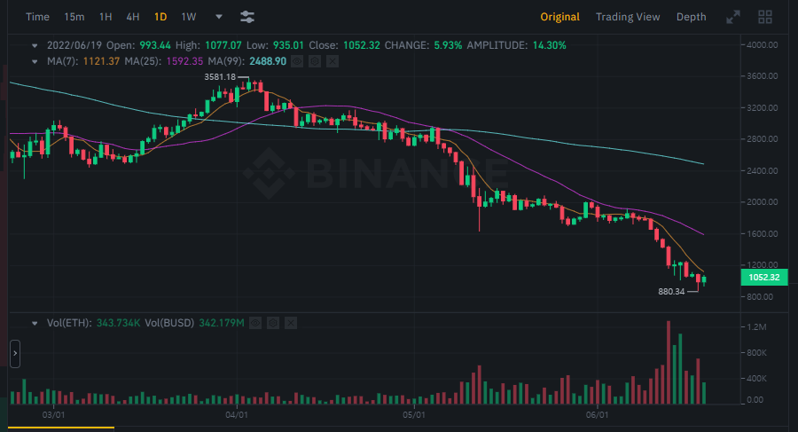 주봉에서 한번 보는 바이낸스 기준으로 오늘 1000달러 초반대를 보이고 있습니다.