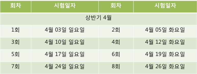 ● 매주 일요일·화요일 시험 다음달부터 시행되는 무역영어시험 2022년 상반기 1회는 4월 3일 일요일 2회는 4월 5일 화요일로, 3회는 4월 10일 일요일 4회는 4월 12일 화요일 이런 순으로 시행됩니다.