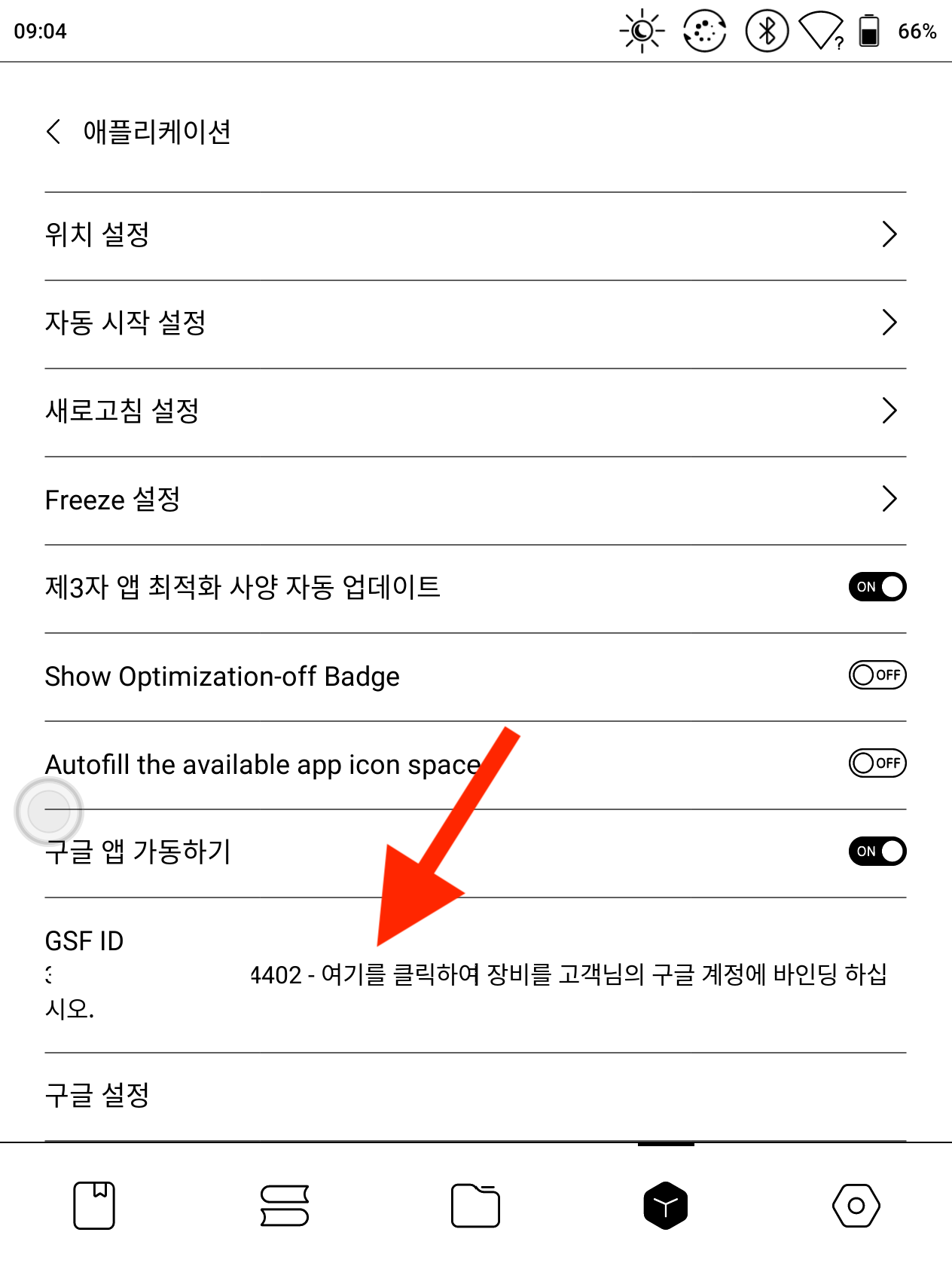 ↓ 자동팝업으로 펌웨어 업데이트 하라고 알려주시네요. 업데이트 합시다. 30분 이상 업데이트 시간이 걸립니다. 혹시 모르니까 와이파이 수신이 좋은 곳으로 진행해주세요. 기기 자체 CPU가 느리기 때문에 쓸데없이 시간이 낭비될 수 있으니까요.↓ Settings 설정을 눌렀더니 아래와 같은 약관이 표시되어 그대로 OK를 눌렀습니다.↓ Settings > Firmware Update를 클릭합니다. 혹시 나머지 업데이트가 존재하는지… 그러면 아무래도 더 업데이트를 해야겠네요. 반드시 수동으로도 펌웨어 업데이트를 다시 확인하십시오.↓ 펌웨어 업데이트 진행 이미지업데이트를 진행하면 reboot을 몇 번 진행합니다. Google Play 스토어 인증 방법 – 난도가 높은 분기기 앱 탭을 누르면 처음에 플레이스토어 자체가 없습니다. 없는 게 아니라 숨겨져 있어요. 그래서 다음과 같은 과정을 거쳐 플레이스토어를 앱스탭에 띄워보도록 하겠습니다. ↓ Apps 상단 우측 세줄 누르겠습니다.↓ Enable Google Play를 활성화시킵니다. 즉, 새까맣게 할게요.↓ 아래의 화상이 떠오르면 1.OK를 터치합니다. 그리고 2.GSF ID를 누릅니다. 구글 회사에 자신의 기기에서 플레이 스토어를 이용하도록 허가를 받는 과정입니다. → 읽지 않아도 괜찮아:기기 모두 인증을 받고 출시하면 아마 구글에 돈을 많이 줘야 할 것 같습니다. 참고로 40만원 이상의 오닉스 기기는 최근 거의 구글 플레이 스토어가 설치된 상태에서 발매됩니다. 리프 2는 단가를 낮추기 위해서 GSF인증 절차 같은 귀찮은 과정을 넣고, 더 싸게 소비자가 살 수 있죠. 결정적으로 나는 이를 피하기 위해서 2달 전에 노트 X내 수요 10.3인치를 구입하지 않고 20만원도 더 높은 노트 에어 2플러스를 샀습니다. 그만큼 나는 이런 차림이 너무 싫습니다. 인증 과정이 개운치 않은 경우가 많아-이런 것을 세팅하는 방법을 오닉스 측에서 친절하게 설명도 하지 않으므로, 네이버 이 북 카페 같은 커뮤니티 활동 없이 스스로 세팅을 알아 두어야 한다는 것은 내가 보기에는 천재에 가까운 분 같아요.↓ Google 계정 ID와 비밀번호를 입력하십시오.↓ 이런 화면이 뜨면 아래로 스크롤 다운해주세요.↓ I’m not arobot 를 체크해 주세요. 그리고 Register를 눌러주세요.↓ 또 인증↓ Google services가 시작된다는 신호 – 이제 끝났거든요↓ 안드로이드 기기에서 사용하시는 대로 앞으로 필요한 앱을 설치해 주세요.↓ Search 할 때 영어 키보드가 필요한 경우 하단의 이미지 중 Keyboard Language를 클릭하여 Korean 키보드를 설정하십시오. 한 이북리더는 키보드까지 구글 키보드 또는 클레마 키보드 apk를 별도로 수동으로 설치해야 하는데 불행 중 다행스럽게도 리프2는 아래와 같이 키모드 언어 설정만 바꾸면 됩니다.↓ 거의 30분 정도 리프 2와 격투를 했더니 아래와 같이 Play Store가 보였습니다.GSF 인증이 경우에 따라서는 하루가 걸리는 경우도 있다고 하는데요.가끔 인증 절차, 즉 구글사에서 인증 허가를 늦게 해줄 때가 있다고 합니다. 그럼 아래와 같은 화면이 표시됩니다. 나는 중간에 GSF를 누르지 않고 진행하여 다음과 같은 경고 화면을 확인하였는데, 여러분도 위와 같은 작업을 거쳐 다음과 같이 표시되면 차 한 잔 드시고 잠시만 기다려주시면 10분 안에는 인증되지 않을까 싶습니다.↓ 구글 인증을 받지 않은 기기라는 설명입니다. GSF 인증되기 전 화면이니 참고해주세요. 고장이 아니니 걱정하지 마시고 GSF 인증 절차를 밟으세요.기타 양품 검사 시 참고사항입니다.받자마자 100%을 바탕으로 충전한다. 이유는 모릅니다만, 그러면 선배들이 합니다. 저전압에서 충전하세요. 노파심. 천천히 전압을 흘리고 상처 받는 기기는 않아요. 고속 충전기도 충전되는데, 한번도 시도한 적은 없습니다. 이전 소니 제품을 전압을 잘 고장 낸 적이 있으므로, 이런 기기는 저전압으로 충전한 것이 편하군요. 다음은 오닉스 공식 홈페이지의 전압 정보를 정리한 내용입니다. If you are searching for some advice about the charger for your Boox device, you are suggested to look up the reliable brand charger. And we’ve listed the specifications below which correspond with all our models for reference. Max and Mira series:5V 3A Note and Nova series:5V 2A or 5V 2.4A Poke and Leaf series:5V 1A저는 그냥 저전압으로 합니다. 즉, 고속 충전을 피합니다. 화면의 display의 상세한 관찰-블라트 스폿 또는 화이트 스폿이 있는지 보세요. 그럴 때는 교환을 추천합니다. 나는 경험한 적이 없어서 다른 분의 사진을 캡처했지만, 그 분에게 허가를 얻고 없는 사진이었기 때문에 샘플 사진을 찾았어요. 구글 링에서 화상 검색을 추천합니다. #이 리더기품 확인#이 북 지도자기 확인 점#리프 2불량품 기타 참고 사항네오리더 TTS의 기본 TTS는 바이두의 것을 사용합니다. 중국 회사입니다. 중국 회사가 나쁜 것이 아니라 한글로 읽어주지 않기 때문에 구글 TTS로 변경하면 영어 발음과 한국 발음을 모두 들을 수 있습니다. 외장메모리확장512G저는 아직도 불필요한 것으로 외장 메모리를 사용하지 않습니다. 512G까지 확장이 가능합니다. 사용자의 리뷰를 보면 삼성 전자의 EVO제품을 선호하네요. 주의 사항:사용한 메모리의 경우 exFAT에서 포맷하고 사용하면 동작이 좋아