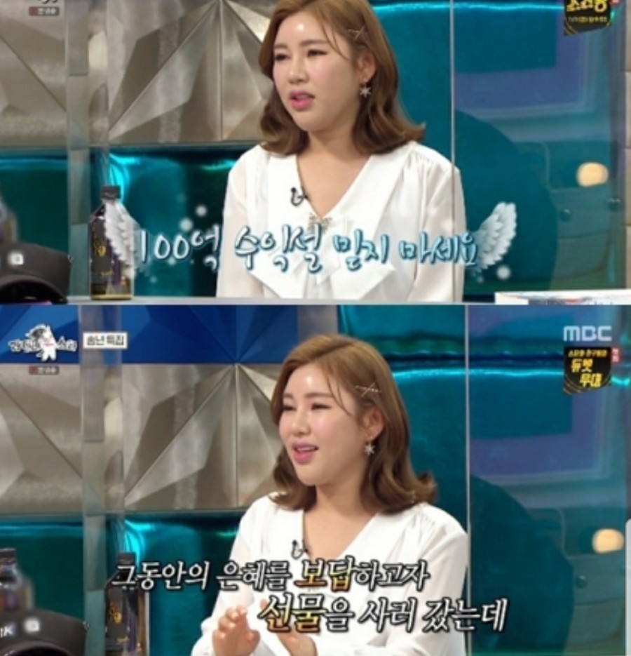 명품녀 이미지에 대해 수입이 생겨 고마운 분에게 보답하기 위해 선물하려던 것이라며 개인 판소리 선생님을 비롯해 그동안 선물하지 못한 분들을 위한 명품 구매였다고 해명했다.