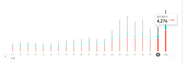 아래는 오늘 방문자 수와 최고 수익을 달성한 어제 방문자 수입니다. 이 데이터를 보고 어떤게 느껴지나요? 이러한 데이터를 보고 분석하면 어느 정도 수익화가 가능합니다.