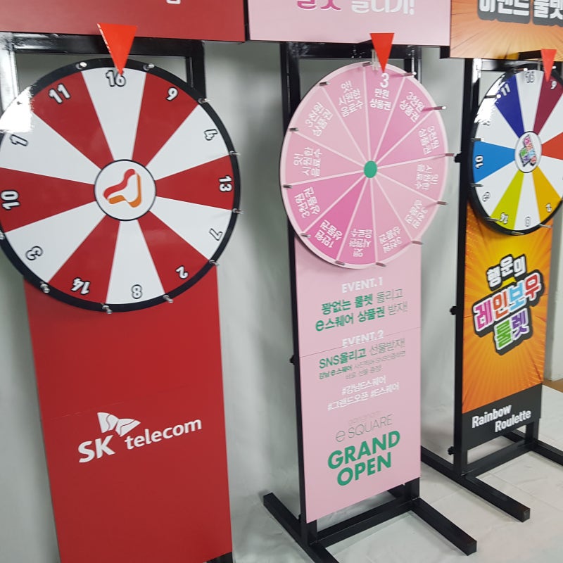 대형 초대형 사이즈로 제작하여 행사장 및 홍보용으로 사용할 수 있는 룰렛 룰렛 제작은 항상 힐링 스포츠 기획으로 함께 합니다.