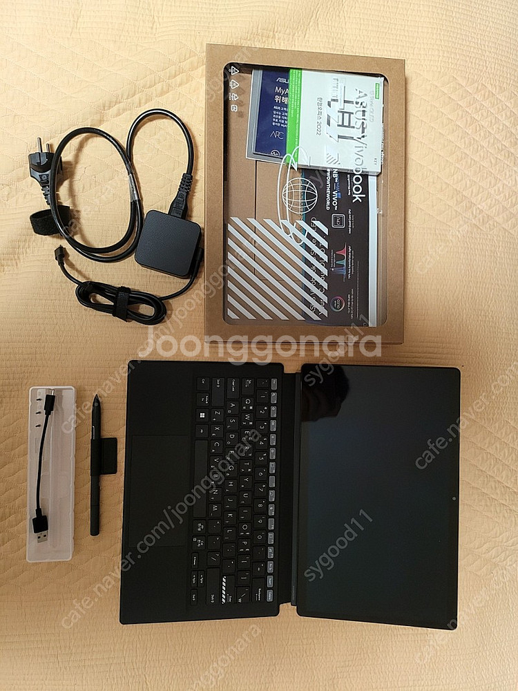 구성품은 본체와 커버 스탠드와 키보드, USB-C 타입 어댑터, H, HB, B 등의 펜 칩이 포함된 Asus 펜이 들어 있습니다.본체만 가지고 다니면 상처가 나는 것은 아닐까 걱정입니다만, 전용 파우치가 붙어 있기 때문에 안심하고 백팩에 넣어 가지고 다닐 수 있습니다.