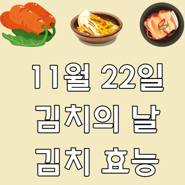 매년 11월 22일은 김치의 날이라는 것을 알았어요? 아마 생소하신 분들이 많을 거예요. 이는 김치산업의 진흥과 김치문화를 계승 및 발전시키고 김치의 영양적 가치와 중요성을 알리고자 제정된 법정기념일입니다. 이날은 김치축제, 요리경연대회를 비롯해 다양한 행사가 진행되고 있습니다. 이를 통해 김치 종주국으로서의 위상을 재정립하는 일정도 진행됩니다.김치와 건강