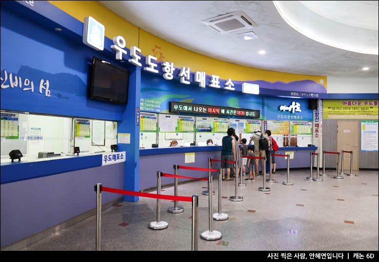 성산포항종합여객터미널에서 우도선이 나옵니다. 제주 우도 여행의 출발점입니다.대기실 안에 매표소가 있습니다.