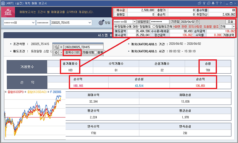오늘 시험에 실패했는데요. 내일은 제대로 테스트 진행해보겠습니다. ■ 주식자동매매 키움캐치가이드 https://blog.naver.com/whistle1119/222749925029 ■ 강의신청 문의 https://blog.naver.com/whistle1119/222007820374- 강의 수강 전 반드시 문의 총정리를 읽고 신청하시기 바랍니다. ■ Renewal 강의 수강신청(더 저렴해진 이벤트 중) https://blog.naver.com/whistle1119/222442522167