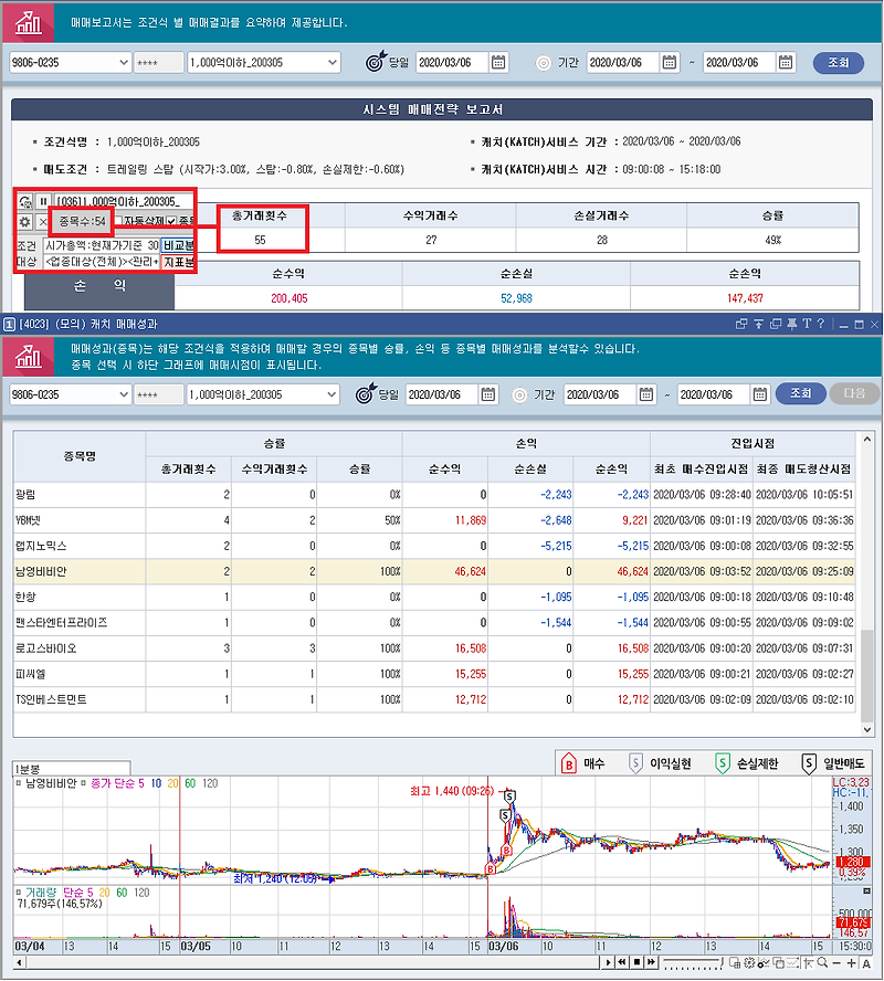 횟수가 많이 늘어나기보다는 비중을 넣어 매매가 가능한 종목이 매매되도록 하고 있습니다.그 후 횟수를 늘려가는 것이 맞다고 생각합니다.횟수가 늘어나면 결국 보유되는 종목이 많아지고, 보유되는 것이 많아지면 분할 매수를 해야 하기 때문에 비중 분산!! 결국 100만원씩 매매해야 하는 것이 종목당 10만~20만원씩 매매됩니다.승률이 높아지면 100만씩 1회 매매해서 수익을 올리는 게 좋아요. 이렇게 하면 한 번에 비중을 넣을 수 있기 때문에 계좌순환에 좋습니다.