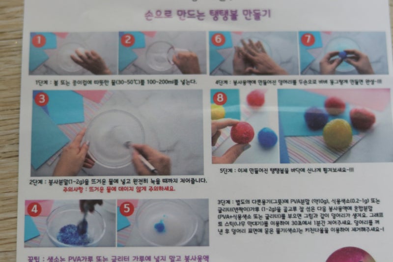 For the time being, there are various ingredients such as PVA, pigment and water, non-soluble liquid, and paper cups.How on earth do you make it?!!!For the time being, there are various ingredients such as PVA, pigment and water, non-soluble liquid, and paper cups.How on earth do you make it?!!!There is also a process manual that allows you to easily view instructions with QR codes, but it is also the easiest to see them on video.Since we’ve read the video carefully, shall we make it together?As you can see in the video, the ratio is important, so my son’s 4 spoons of PVA and 2 spoons of water are filled with careful hands.And then I added some pigments.You can roll it up with a stick.After that, turn the non-use medicine around and turn it around so that the solution seeps in.You can leave it for about 5 minutes and take it out after it dries out, then shape it round with your hands or swing it around using a frame, and then play it an hour later. You’re not the son who waits for an hour and stays still, right?I joined my sister. (She doesn’t like taking pictures, so I’ll join her.)I’m excited. I’m confident that I’ll make one and two. Now I’m excited and smiling when I add colors.Probably, we are planning to produce a large amount of tennis balls.During mass production, I took pictures of only four pretty ones except ugly ones.During mass production, I took pictures of only four pretty ones except ugly ones.And the purpose of my mom’s wish is to learn about scientific principles, right?The scientific principles of material change hidden in the temblor Brief description PVA (polyvinyl alcohol) is a polymer substance linked in a long chain.When it touches water, it turns into a sticky glue.When you mix non-soluble (borax) in glue, it becomes elastic like rubber while being sandwiched between PVA chains.The scientific principles of material change hidden in the temblor Brief description PVA (polyvinyl alcohol) is a polymer substance linked in a long chain.When it touches water, it turns into a sticky glue.When you mix non-soluble (borax) in glue, it becomes elastic like rubber while being sandwiched between PVA chains.ロード中… player_likesound_mutesound_mutesound_volume2sound_volume3[x]プレーヤーサイズ:0x0現在の解像度:0PMaxAbr解像度:0PPプロトコル:hls現在の帯域幅:平均帯域幅:バッファの状態:フレームドロップレート:0/0「ビデオ統計バージョン4.29.4(HLS)ビルド日(2022/8/31)」ネイバー株式会社 동영상 인코딩 중입니다.5분 이상 소요될 수 있으며, 영상의 길이에 따라 소요 시간은 달라집니다. 초등과학놀이 재생 수84 0 topleft rightbottom마우스를 드래그 하세요360° Video도움말 MULTI TRACK멀티트랙의 트랙별 영상은 우측 관련영상에서 볼 수 있습니다.선거광고 안내 음소거00:00 | 00:18 화질 선택 옵션자동 자동 144p 270p 360p 480p 720p HD 1080p HD 화질 전체화면 00:00 00:04 00:07 00:11 00:14 광고정보 더보기초 후 SKIP초 후 재생SKIP광고 후 계속됩니다.SNS●●●●●●バンドTwitterFacebookブログカフェURL 주소복사HTML 소스544 x 306740 x 416936 x 5261280 x 720복사Flash 미지원으로 Object 코드 퍼가기 기능은 더 이상 지원되지않습니다.도움말 플레이어 URL 복사 레이어 닫기접기/펴기초등과학놀이 탱탱볼만들기 초등과학놀이 #초등과학놀이#탱탱볼만들기 1시간이 훌쩍 지나고 이제 제대로 튕겨지는지 테스트해보기.동영상보시면 아주 잘 된답니다.성공적으로 탱탱볼을 만들면서 아이와 함께 과학놀이 알차게 보냈답니다.