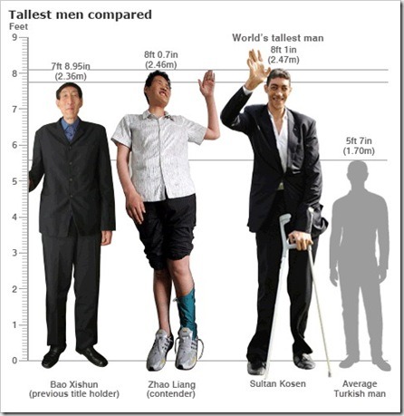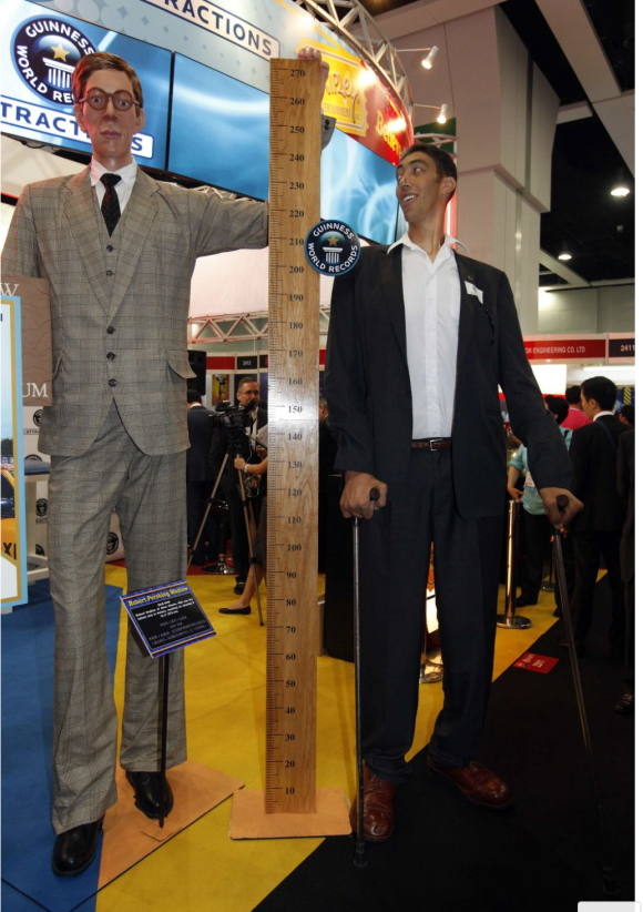 결국, 현재 세계에서 가장 키가 큰 사람은 술탄 케센이 되었다 – 출생: 1982년 12월 10일(38세), 터키 마르딘 – 신장: 251.4cm – 체중: 137kg – 발 크기: 36.5cm (왼발 365mm, 오른발 355mm) – 연장: 28.5cm – 국적: 터키