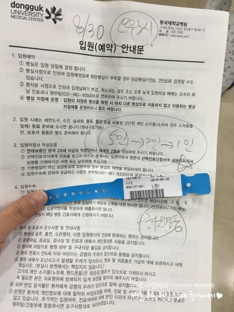 수술 경과 1일차 – 당일은 수술복을 입는 전속복 탈의, 액세서리 제거 후 무통주사를 맞게 된다.