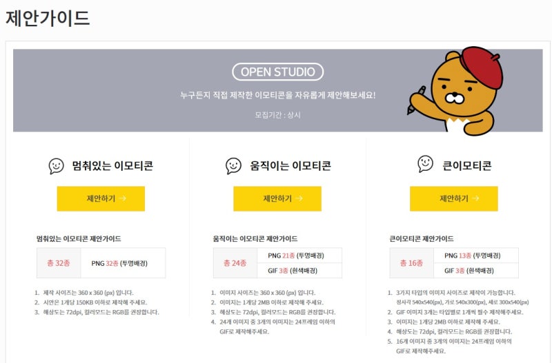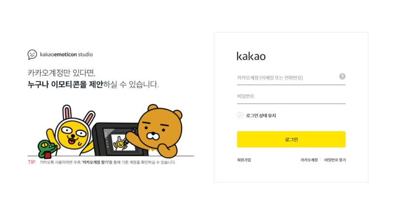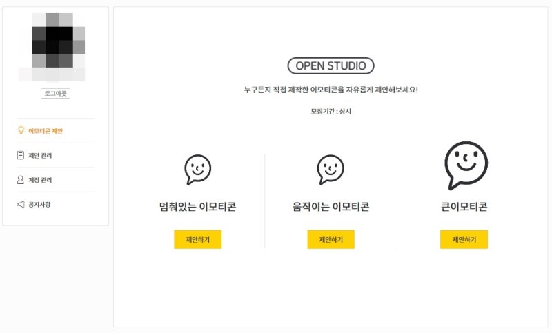 先にやってみると決めたらポータルサイトにアクセスしてください。提案は誰でも自由にでき、本人が創作したキャラクターを承認さえ受ければ、他の人も私が作った絵文字を使えるということです!本人がカカオトークの絵文字をするには、まず接続されたアカウントでログインしてから提案者をクリックして基本情報を入力してください!!