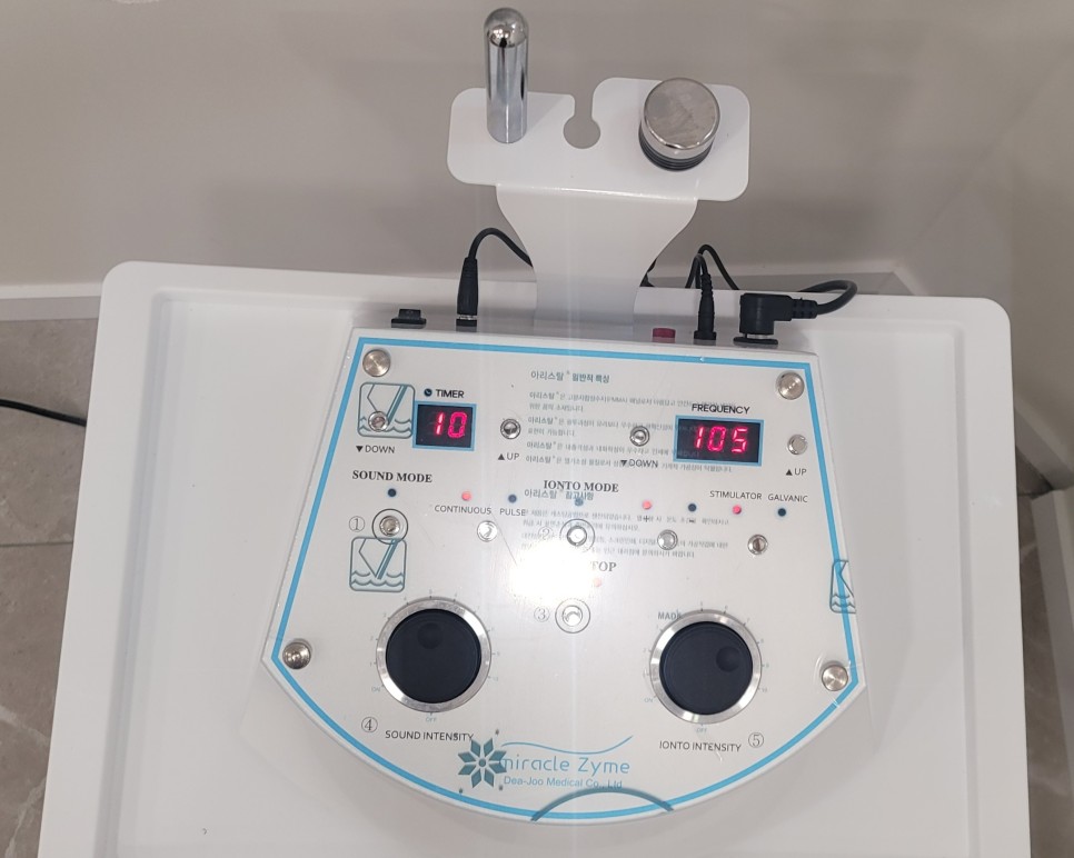 미라클 자임을 사용하는 이 기계는 미라클 자임이라는 것입니다. 우리가 병원에서 검사 및 치료를 받을 때 하는 초음파를 사용한다고 하네요. 병원에서도 자주 사용하지만 우리가 흔히 몸이 약할 때 보약으로 기력을 보충하듯 피부에도 영양성분 기능성 제품을 피부 깊숙이 넣어 채우는 역할을 한다고 합니다. 그래서 물광 피부와 피부 진정 효과도 있다고 합니다.
