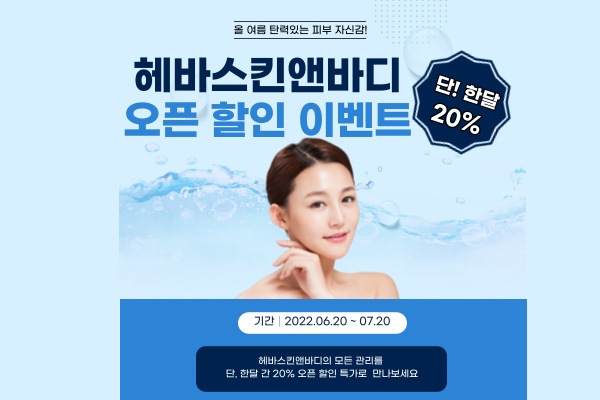 노원역 스킨케어 헤바스킨&바디 한달간 20% 오픈 이벤트를 진행하오니 일찍 오셔서 받아보세요.