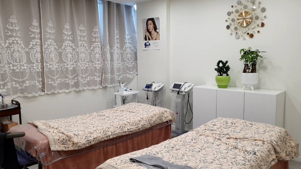 제가 피부 관리를 받은 관리실입니다. 이곳은 2인실, 1인실로 나누어져 있는데 2인실 공간도 상당히 넓었습니다.옷장에 준비된 가운으로 갈아입고 침대에 누워서 관리를 받습니다. 원장은 제 얼굴에 거칠게 나온 것이 피지가 뻐근하기 때문이라고 하네요. 세상의 모든 생명은 성장하면서 오래된 것을 제거하고 새로운 것을 생성하는데 우리 피부도 그렇고 죽은 세포는 떨어뜨리고 새로운 세포가 정착하도록 도와야 한다는 것입니다.하지만 나처럼 관리를 해주지 않는 사람들은 오래된 세포가 피부에 남아 새로운 세포가 생성되는 것을 방해한다고 합니다. 그렇게 되면 피지처럼 굳어져 뾰루지가 되거나 매끄러운 피부로 재생하는데 어려움이 있다는 것입니다.우선 제 얼굴의 거친 피지부터 제거해 주었습니다. 이것만으로도 매끄러운 피부가 될 것 같아요.그리고 원장님께서 마사지를 해주시는데 정말 손재주가 대단하시네요. 아플 정도로 압박이 있는데 아픈 것보다 정말 시원한 느낌이 들었습니다. 와 이거 완전 중독될 것 같아요. 원장의 손 마사지 중독에 걸리면 어떤 마사지기계도 손절할 것 같습니다.