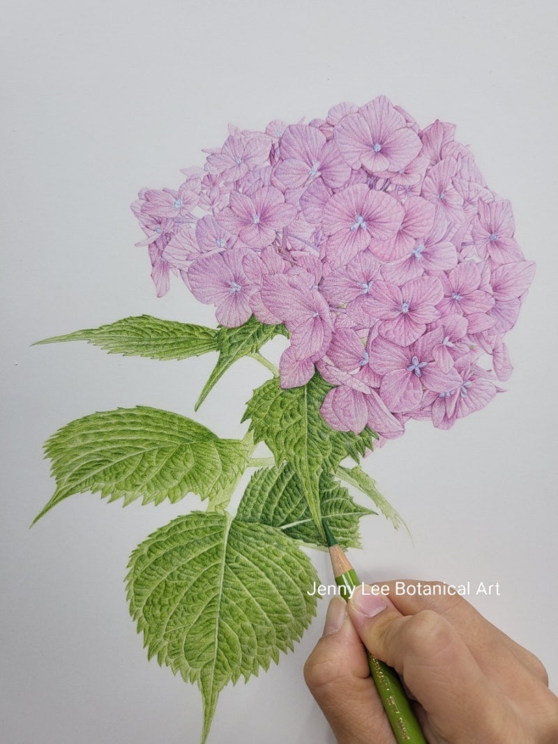 보태니컬 아트 전문화실의 클로리스 보태니컬 아트입니다.주영쌤 털갈퀴 완성작이요.잔꽃과는 대조적으로 연꽃잎처럼 큰 잎의 밀도를 높여서…새해가 오기 전에 완성해 주셔서 보는 저도 기쁩니다.시작할 때는 언제 완성될지… 끝이 멀었는데 성실하게 하나하나 진행해주셔서 이렇게 멋진 완성작이 눈앞에.. 털북숭이는 국화과에 속하는 여러해살이풀이고 노란 꽃은 늦가을에 피는데 모든 부분을 약재로 쓸 수 있다고 하니 아낌없이 주는 고마운 식물이라고 생각합니다.털북숭이 꽃말은 ‘일편단심’이라고 하는데 성실한 주영 선생님과도 딱 맞아 더욱 가깝게 느껴집니다.완성까지 수고하셨습니다.♡ 사이즈 : A3(297*420) 재료 : 색연필 * 회원님 창작품(무단도용금지)