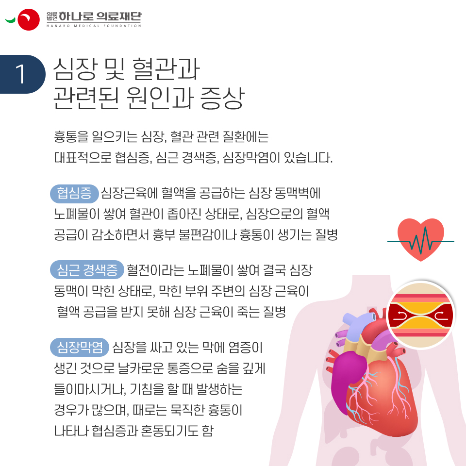 흉통의 원인과 증상 1. 심장 및 혈관과 관련된 원인과 증상