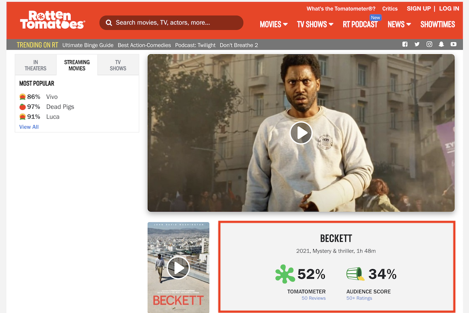 로튼 토마토의 평점을 보면 토마토 미터 52%.웬만한 스코어는 34%로 팝콘톤이 쓰러졌다. 아직 리뷰 수는 많지 않지만 지켜봐야 할 것 같다.