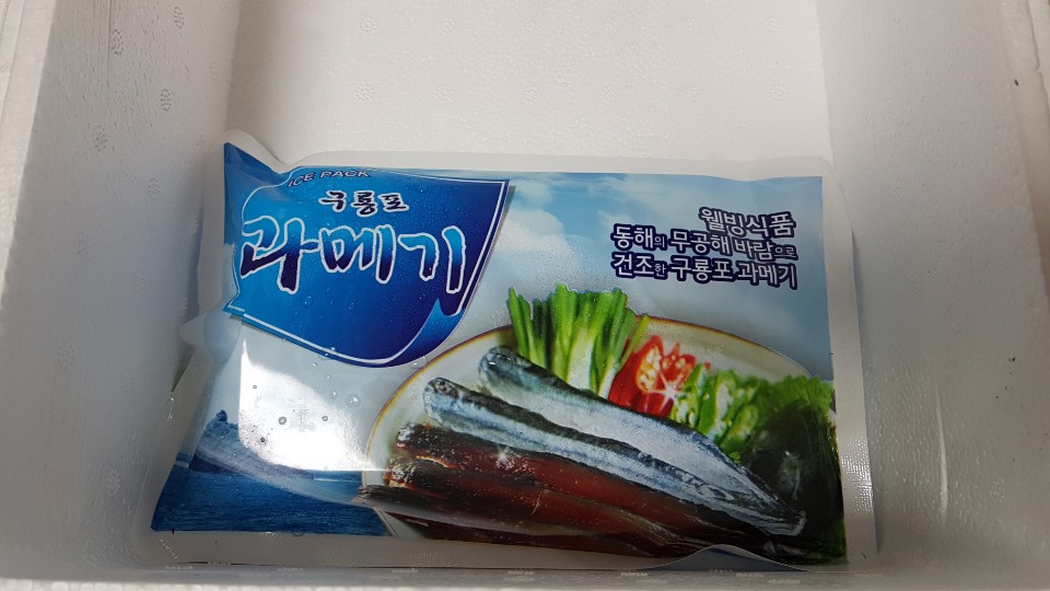 전날 저녁에 도착한 것을 집에 가지 않고 밖에 두고 그냥 가져갔지만 아이스팩은 여전히 단단했고 포항과 메기도 차갑고 온도가 잘 유지되고 있었다.