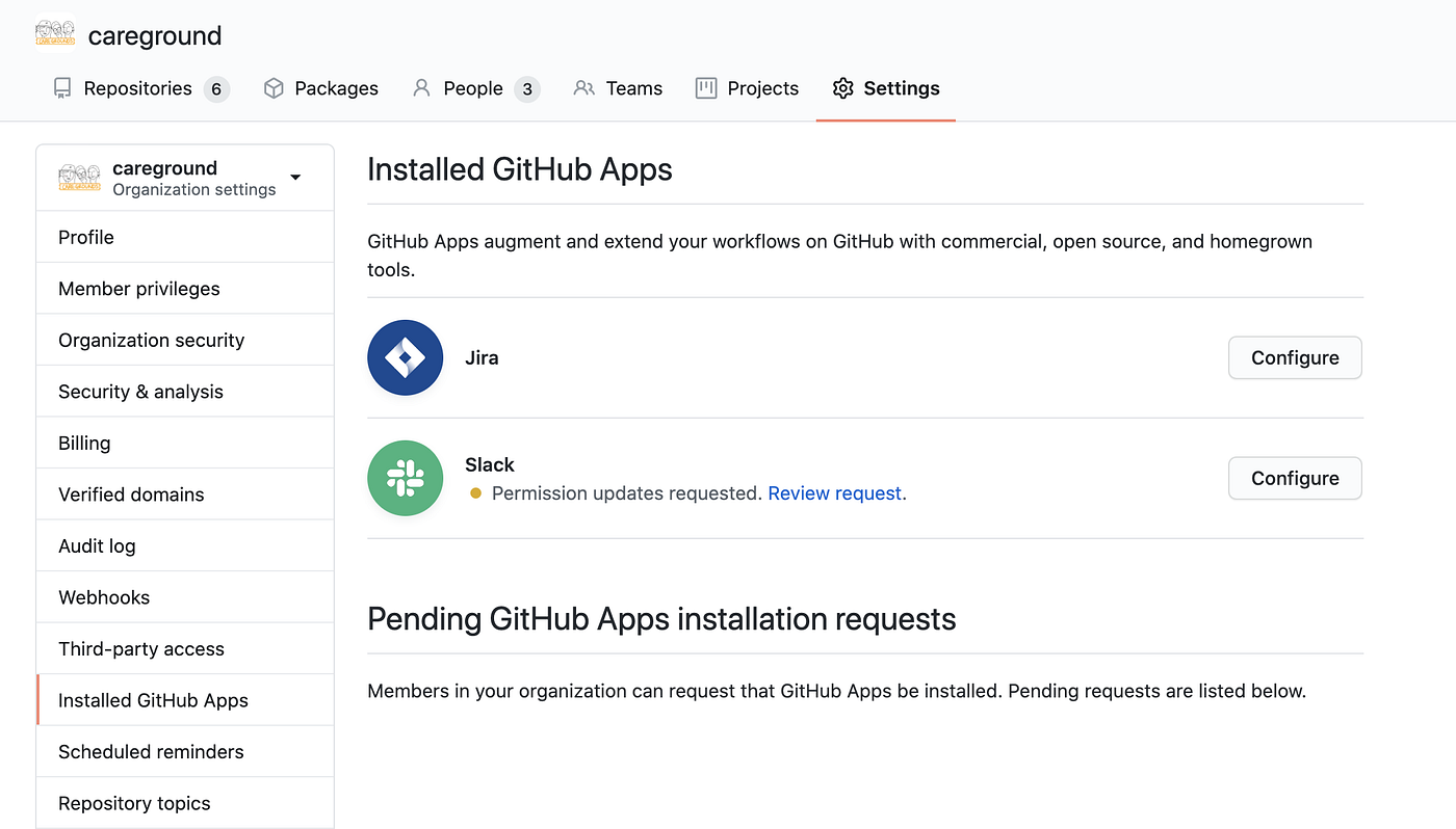 2. githuborganization settings→Instaled GitHub Apps→jira conrigure