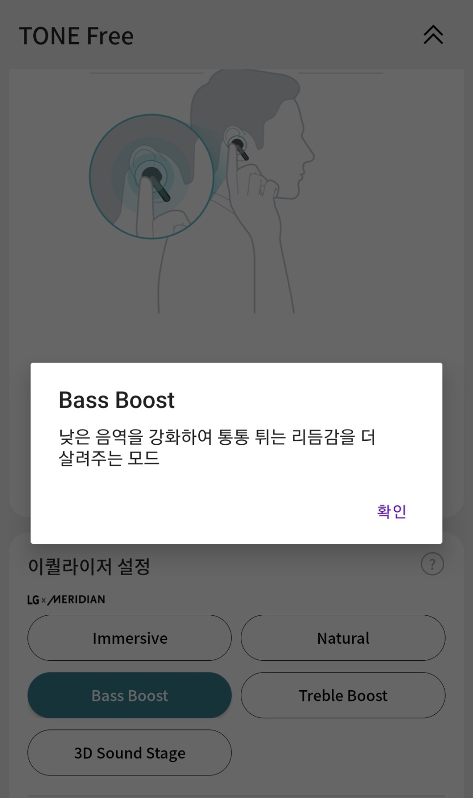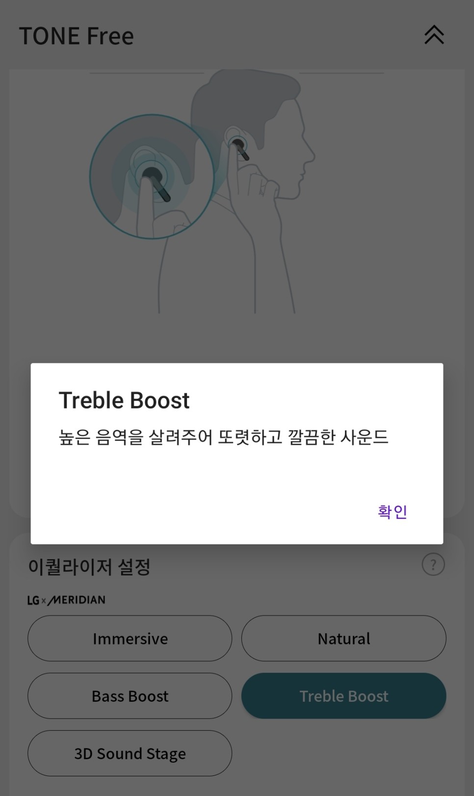 5가지 프로그램 된 이퀄라이징 설정을 원하는 취향대로 선택하여 사용할 수 있으며 개인적으로 세팅하여 취향에 따라 사용할 수 있다.각 상황에 맞는 장르로 세밀한 세팅이 되어 있기 때문에 선택해 사용하는 것만으로도 매우 만족스러운 음질을 느낄 수 있다.