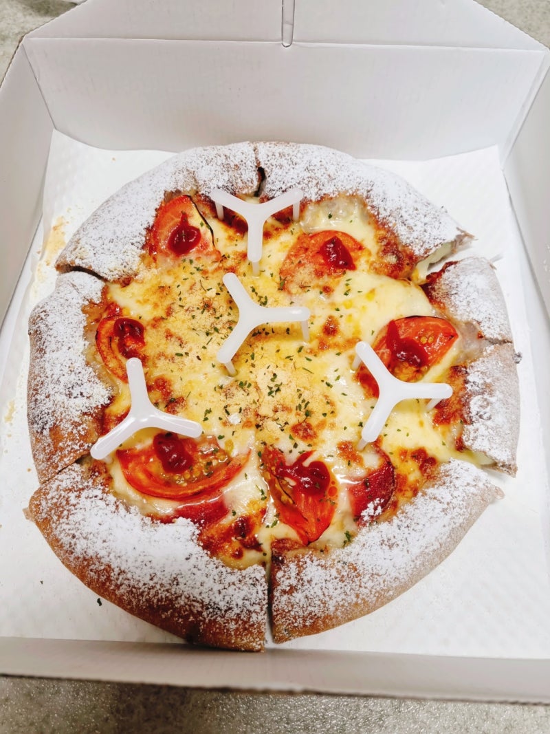 이렇게 개봉하면… 마치 크리스마스 기분 나는 건 몰아붙일까요?달고 두꺼운 빵에…치즈 듬뿍 토핑으로 토마토가 통째로…