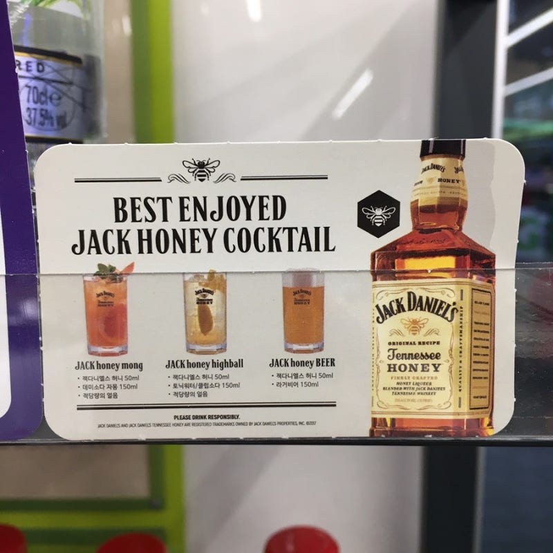 취향에 따라 위스키 준비! 역시 초보자들이 가장 쉽게 접할 수 있을 것 같고 편의점에서 쉽게 구할 수 있는 게 잭다니엘 제품! 거친 느낌이 들면서도 뭔가 쉽게 마실 수 있을 것 같아요. 특히 잭 다니엘 허니 제품의 경우에는 더욱 달콤함이 느껴지며 인기가 많은 제품이기도 합니다. 여기에 콜라, 탄산음료, 탄산수, 티 등을 활용해 맛있게 즐기는 것도 좋은 방법이에요!숙성 연도가 스카치 위스키보다 짧은 것으로 알려져 있기 때문에 거친 느낌도 듭니다. 미국에서는 콜라와 함께 마시는 잭콕이 일반적이라고 하더군요. 소스로 즐기기도 한대요. 굉장히 요리에도 활용할 수 있는 위스키 제품이 아닐까 생각합니다.