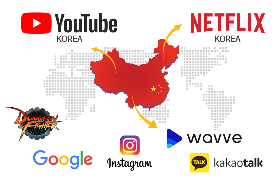 현재 중국은 전 세계에서 많은 사람들이 사용하는 구글, 넷플릭스, 유튜브 등 주요 서비스가 차단돼 있습니다. 한국의 카카오톡과 네이버 역시 차가 막혀요. 대신 웨이보나 바이두, 위챗, UKU와 같은 중국 내 자체 서비스가 제공되고 있습니다. 문제는 검열도 그렇고 중국 내 서비스라 콘텐츠 제한이 크다는 점입니다. 한국 넷플릭스, 티빙, 웨이브 등 OTT 끊김 없이 시청 유튜브, 인스타그램 릴스 등 동영상 HD급 고화질 감상 렉이 없는 한국 온라인 게임 플레이가 가능
