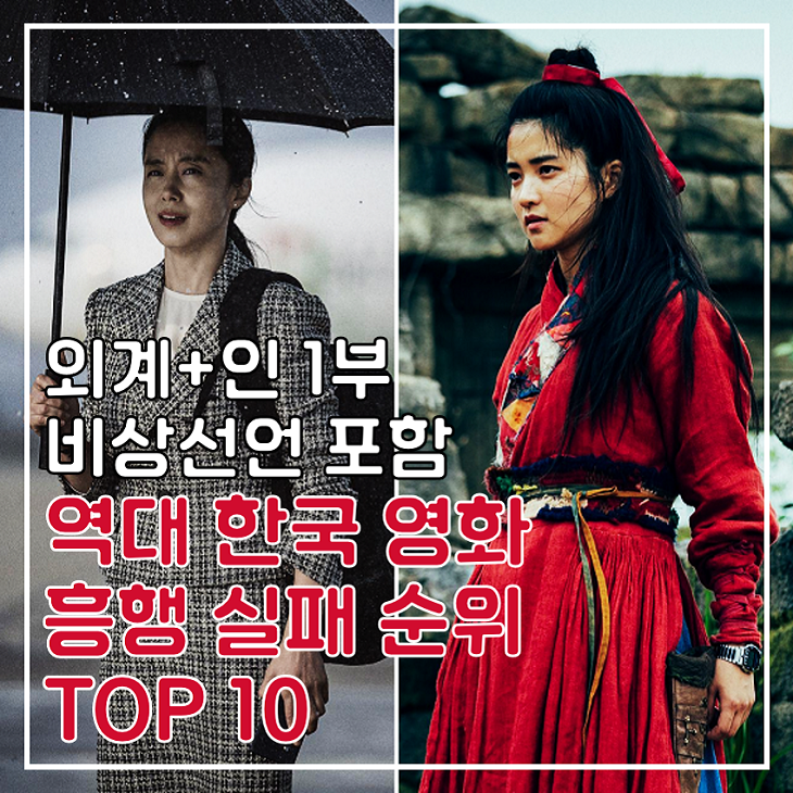 두 작품 모두 아직 극장에서 상영 중이라 너무 이른 감이 있지만, 두 작품이 현재 과연 얼마나 부진한 흥행 성적을 기록하고 있는지 보여드리는 차원에서 오늘은 <비상선언>과 <우주+인1부>를 포함한 역대 한국영화 흥행 실패작 TOP10을 정리해 보려고 합니다.