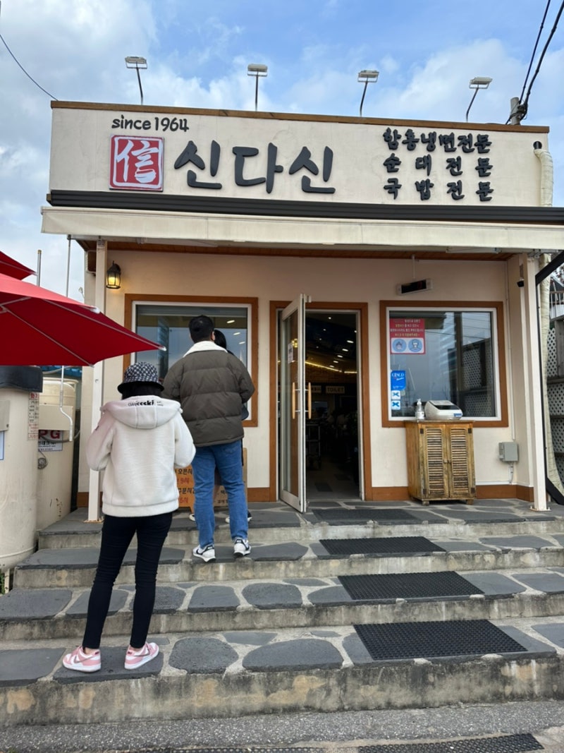 제가 제일 좋아하는 메뉴 순대국 저번에 속초 여행 갔을 때 신 거 테이크아웃 해서 먹었는데 너무 맛있었던 기억이 나서 다시 찾아갔어요.순대국물 2개+오징어순대 시켜서 3명이서 나눠 먹었는데 아이가 아직 순대를 잘 못 먹어요.국물만 두 개 시켜도 충분했던 것 같아.;;