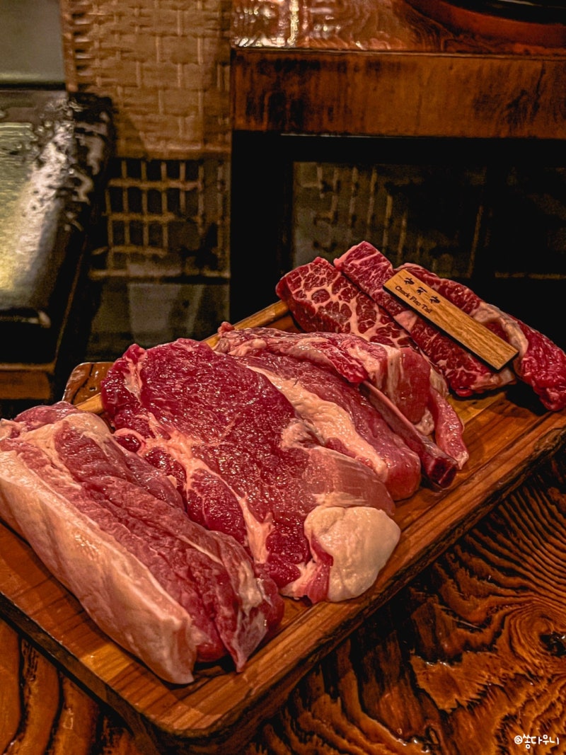 다른 고깃집과 전혀 다른 점은 개인화된 형식이다. 그리고 화로가 가운데 위치하지 않고 테이블 옆에 위치하고 있다는 점이다.