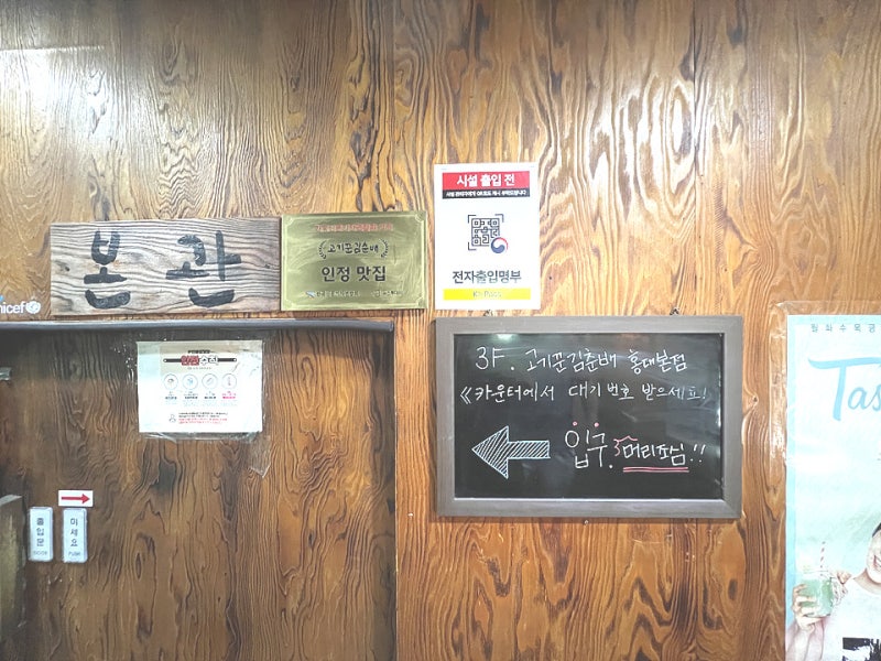 위치는 3층에 있기 때문에 좁은 계단을 올라가야 하는데 엘리베이터가 없으니 이점 고려해주세요.입장하는 출입구가 독특하다. 마치 뒷고기를 파는 곳을 영상화시키는 문이다. 문 높이는 그리 높지 않으므로 성인 남성 기준으로 고개를 숙이며 입장해야 할 것이다.