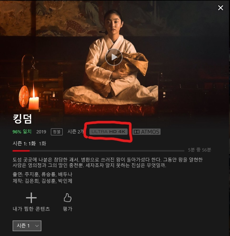 오늘은 <킹덤>을 비롯한 넷플릭스에서 제공하는 4K UHD 콘텐츠를