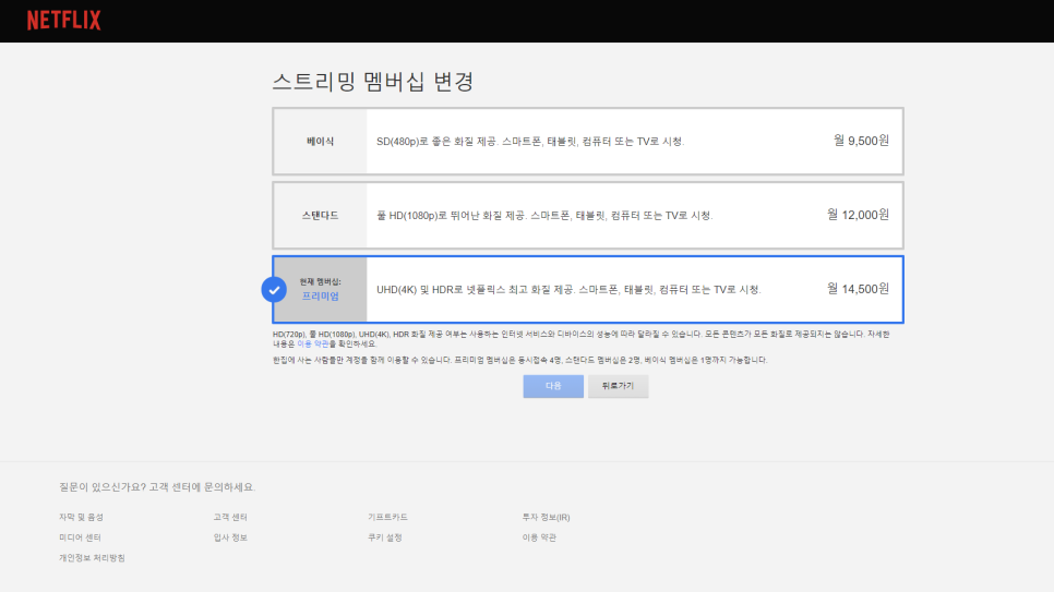 넷플릭스의 유료 상품은 3가지 요금제가 있는데,