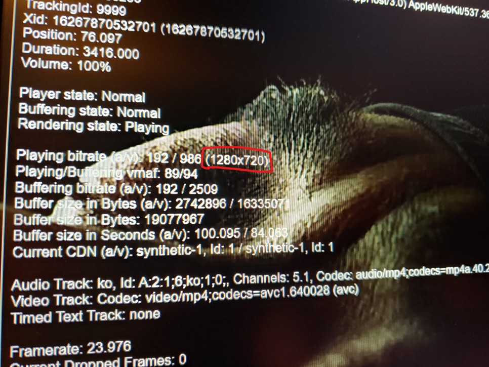 그래도 넷플릭스 앱으로 재생을 했더니 크롬의 720p 해상도보다는 좋아진 1920×1080 Full HD 해상도로 재생되는 것을 확인할 수 있었습니다.
