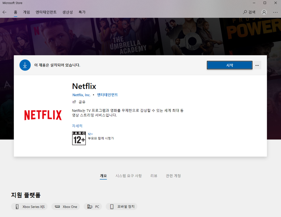 우선, Windows 에서 MS store 에 액세스 하고, Netflix 를 검색하고, 앱을 인스톨 했습니다.
