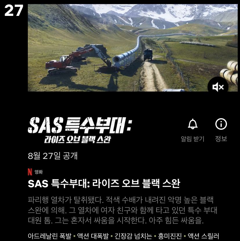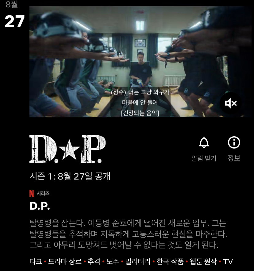 D. P청해인이 나오는 건 유튜브 광고에서 예고편을 본 것 같은데 재밌을 것 같기도 하고?나가면 봐야지.8월 27일 근데 시즌 1이네