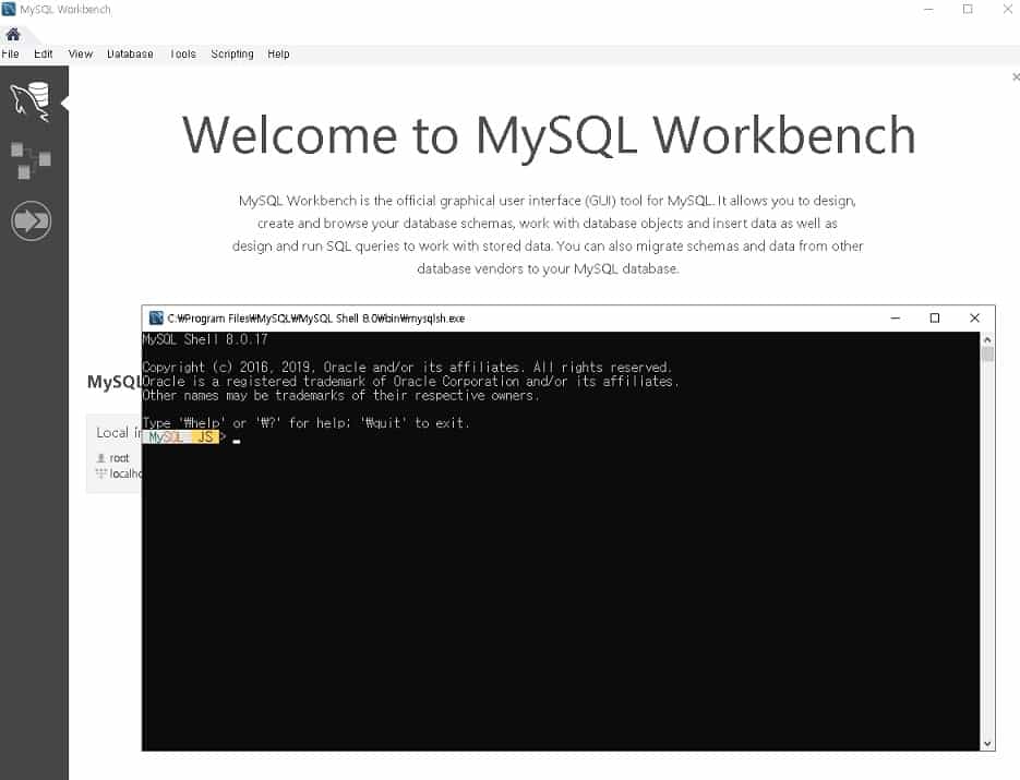 ①의 “MySQL Workbench”가 실행되면 MySQL이 정상적으로 설치가 완료되었습니다.