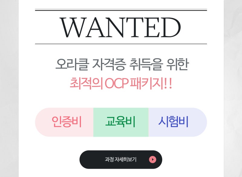 비전공자 또는 취업준비생의 경우①. OCP자격증 취득부터 : 정보처리기사자격증을 먼저 준비해주세요. DB 분야는 신입 채용이 없기 때문에 백엔드 서버 개발자 또는 서버 엔지니어로 경력을 쌓고 이직을 준비하는 것이 적합합니다.② 빅데이터 분석가: 종종 빅데이터 분야 취업을 준비하는 분들이 오라클 자격을 요구하기도 합니다. 빅데이터 분야는 파이썬, R, 그리고 통계 공부가 더 중요한 분야입니다. 자격증은 ADsP, SQLD, 빅데이터 분석 기사 세 가지가 적합합니다.KG에듀원아이티뱅크에서는 -OCP자격인정교육(국내 유일)-덤프제공-홈테스트 응시방법 가이드라인 매년 오라클자격인정교육을 운영하고 있습니다. 12C버전부터 공인교육을 국내에서 본 교육기관만 운영하고 있습니다. 공인수업은 대면수업, 비대면수업이 모두 운영되고 있으며 보통 주말반으로 개설되어 있습니다.KG에듀원 아이티뱅크는 IT기업이 운영하는 교육기관입니다.(KG모빌리티, KG이니시스 등) 1:1 무료 취업컨설팅 오라클 공인교육기관 아마존 AWS 공인교육기관 종로, 강남, 노량진, 부산센텀 KG그룹이 20년간 운영하는 기관으로 수료생에게 취업연계를 별도 제공합니다.아래 홈페이지에서 목적, 목표에 맞는 맞춤 교육과정을 참고하시기 바랍니다.KGIT뱅크 – IT전문교육기관 IT교육의 중심!아이티뱅크에서 성공하세요!www.kgit.krKGIT뱅크 – IT전문교육기관 IT교육의 중심!아이티뱅크에서 성공하세요!www.kgit.krKGIT뱅크 – IT전문교육기관 IT교육의 중심!아이티뱅크에서 성공하세요!www.kgit.kr