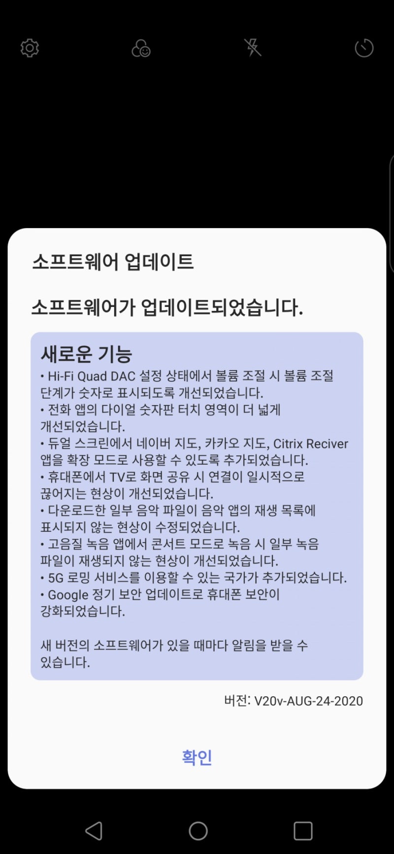 LG전자 : 유용한 팁 | SW업데이트 알림 | 모바일 콘텐츠 [공지사항][SW개선] V50 ThinQ(LM-V500N) 소프트웨어 업데이트 공지(8월 3차) V50 ThinQ 소프트웨어 업데이트 공지(8월 3차) V50 ThinQ 최신 소프트웨어 개선 내용을 알려드립니다. 사용 편의성을 향상시키기 위해 다음과 같은 최신 소프트웨어 버전으로 업데이트하여 사용하십시오. 꼭 알아두세요!> – 업그레이드 중 오류가 발생할 수 있습니다. 중요한 데이터는 미리 백업해 놓고 진행해주세요. – 업데이트를 실행하면 보안 정책이 강화되고 보안이 낮은 이전 버전의 소프트웨어… www.lge.co.kr