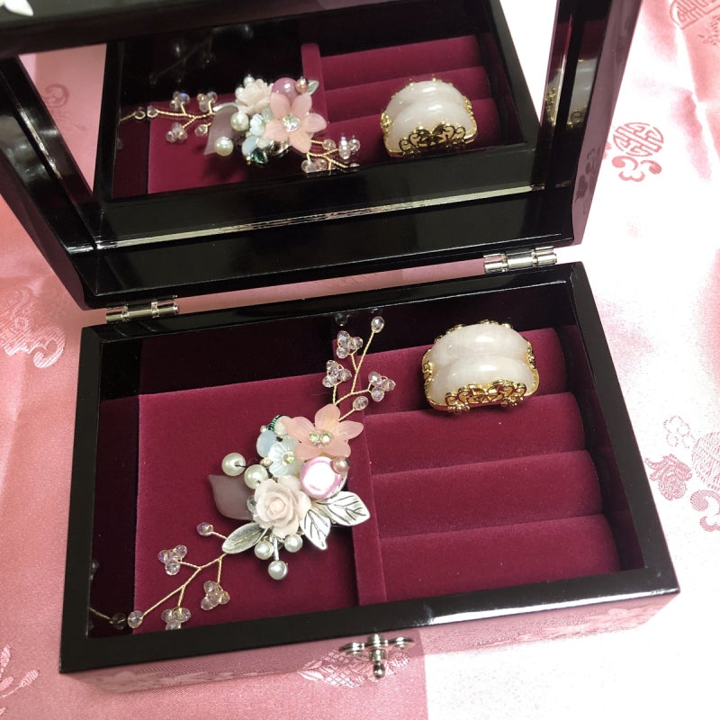 기본 구성에 액세서리를 하나 선택할 수 있습니다.나는 본식 때 한복 입을 때 착용해 달라고 크리스탈 브로치를 골랐습니다.엄마꺼도 (핑크) 추가로 구매!